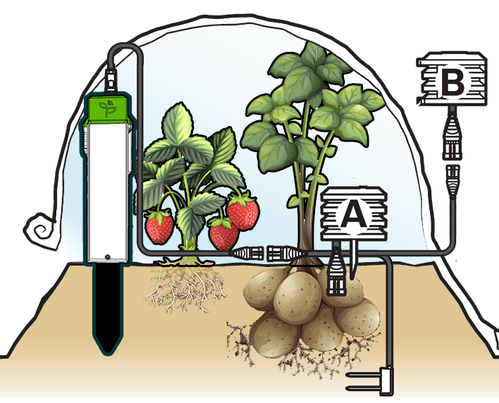 Air Stick z zewnętrznym czujnikiem szparagów monitorującym optymalny zakres temperatur na 4 poziomach Soil Stick z opcjonalnymi czujnikami zewnętrznymi do monitorowania mikroklimatu na roślinie Przyrząd do zabrudzenia z dodatkowym czujnikiem zewnętrznym na zewnątrz folii/szkła |